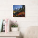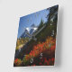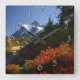 This square clock features a beautiful autumn landscape including a hiking trail, red and gold foliage, and Mount Shuksan in the background.