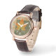Women’s perfect square brown leather strap watch with an image of a green, orange and yellow maple leaf on quilted green and brown. See matching square charm, large square premium metal keychain and square double-sided acrylic keychain. See the entire Thanksgiving Watch collection under the ACCESSORIES category in the HOLIDAYS section.