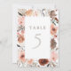 This table number sign has watercolor orchids, roses, palm leaves and twigs in a neutral colour palette. The sign is double sided. Perfect for autumn weddings!