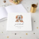 A beautifully presented guest book which came with a lovely gift box for storage. The book was hard back so stayed fresh after being handed around to all our wedding guests. We had lots of compliments about the design which went perfectly with our theme. Perfect, no issues at all with the printing. It arrived on time and came well packaged.