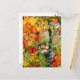 Teaming lush green trees with fallen brown leaves, and a warming palette in a fashionable midnight blue with bursts of vibrancy.