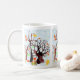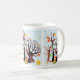 This image is designed as an autumn day with the snow coming down. The trees are losing their leaves and the turkeys are sitting on their vegetables and fruits. These mugs are available in assorted styles and sizes. Mix and match with other accessories in the Kitchenware Dept.