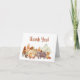 Cute baby shower thank you card featuring rustic autumn watercolors of woodland animals with their tent camping in the mountains and forest, fall foliage and pumpkins and "Thank You!" in a terracotta script. On the inside, personalise your thank you message or leave blank for a handwritten note.