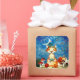 This beautiful vibrant children's print features a cute watercolor drawing of a beautiful sleepy bear with feathers on head, a cheeky dancing mouse on his lap, in the forest, surrounded by autumnal decor elements like mushrooms,apples, berries, pumpkins and little mice running around.The magic of the moon and stars shines through the trees. This image makes a beautiful design for your children's home decoration. This adorable autumnal colourful Autumn Woodland Friends Fox Forest Illustration Poster will brighten up any kid's room and is a wonderful gift for thanksgiving, birthday or homedecoration. Designed with Love by UtART.