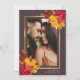 On the back, a classic white background showcases your favourite photo nestled within a golden frame. Delicate autumn leaves gracefully accentuate the image, creating a harmonious and timeless keepsake. This save the date card is the perfect way to introduce your guests to the magical ambiance of your fall wedding.