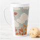 A breathtaking display of fiery orange and red autumn leaves dancing against a backdrop of serene pastel blue sky adorned with fluffy white clouds. Did you know that the vibrant colors of fall foliage are not caused by cold weather, but rather by the breakdown of chlorophyll, the green pigment in leaves, revealing underlying hues of yellow, orange, and red? This design captures the ephemeral beauty of autumn, a time of transition and transformation.