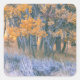 A cluster of aspen trees stand tall in a forest setting, their leaves ablaze with vibrant shades of yellow and orange. The smooth, white bark of the trees contrasts beautifully with the warm autumn hues. The ground is covered in a carpet of dry, golden grass, adding to the sense of tranquility and peace.