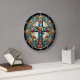 Autumnal Floral Stained Glass Cross Large Clock
