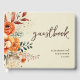 Capture your special day's magic with this elegant floral wedding guestbook featuring a chic botanical bouquet of warm autumnal flowers and leaves