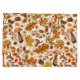 Hand-painted autumn pattern with various autumnal leaves, berries, acorns, birds and mushrooms