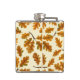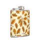 Autumnal oak leaves on off white hip flask