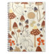 Autumnal seamless pattern with mushrooms, flowers, notebook