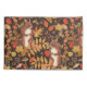 Autumnal squirrels and flora on dark brown pillowcase