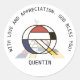 Alluring, funny, artistic monogram. Here is the letter "Q". Neoplasticism style, or De Stijl, line and colour artistic decoration, the funny bird sits on the letter. The field of art is located under the letter. The template name "QUENTIN" is located under the image. "With love and appreciation. God bless you!" text goes around the image. You can change or delete all the texts, and you can change the image. Unique, one-of-a-kind sticker for you. You can transfer this design to a number of products. Feel free to use the "Edit Design" or "Personalise" (as the case may be) button of the blue colour to change the font, colour, or position of the image and the template text. Be creative, customise, buy one, and be happy!