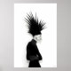 Command attention with this striking black and white art print, a masterful display of avant-garde fashion and artistic minimalism. This captivating portrait features a mysterious figure in profile, adorned with an incredibly dramatic, spiky black headpiece that reaches skyward, creating an unforgettable silhouette. Her look is further enhanced by an intricate, multi-layered black choker, gleaming patent leather-like gloves, and a bold statement earring, all contributing to an aura of sophisticated allure. Set against a pristine white background with subtle shadow play, the high-contrast composition emphasises the bold forms and textures, making this print a powerful statement piece. Perfect for contemporary interiors, this artwork will add a touch of dark elegance, high fashion, and enigmatic beauty to your living room, bedroom, office, or creative space, appealing to art enthusiasts and fashion connoisseurs alike.