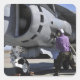 Aviation fuel technician attaches a fuel line square sticker