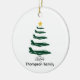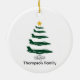 Fun design features a minimalist image of a Christmas tree made from green military aeroplanes. The tree is topped with a bright yellow star and the trunk spells out Merry Christmas in a black font. The back has a heartfelt message of "Sky's finest pilot" and "Merry Christmas from, names" - all of which is customisable. Makes a great present for a pilot, veteran, or aviation enthusiast.