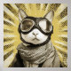 Aviator Cat Goggles Sunburst Portrait Poster