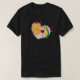 I give wanted to give this a 4 instead of a 5 because these Basic DARK T0shirts run unexpectedly SLIM or Narrow. Which is great if you do not have a potbelly, but I have a paunch. It isn't the shirt's fault that I've got a beer belly. The design and shirt itself is a quality cotton shirt. The color is more of a deep purple, but still a very pretty color. The Basic DARK T-shirts run a bit SLIMMER than the Basic Ts. The neck is a fraction narrower (or seems to be narrower) also. I'm a paunchy middle-aged woman and my neck is 12 inches (31cm) thick and the neckline fell about the same as in the photo of the man, and I had the desire to tug it a bit. So if you're a thick necked man or like loose shirts, be aware these are slimmer shirts. Once I get rid of my lockdown paunch it'll look great. The shirt washed well in cold water with no apparent bleeding. We don't have a dryer, so it hung dry. Did not shrink. Love the colors and the design. The design looks smaller on my shirt than it does on the model on-line. But still, it looks good on the shirt. The printing looks as it does on the model, just the size seems fractionally smaller. Washed garment in cold water, hung dry and design appeared unaffected.
