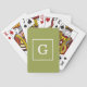 Avocado Green White Framed Initial Monogram Playing Cards
