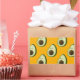 A cartoon style avocado pattern on an orange background.