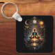 A radiant meditator aligned with celestial symbols and glowing chakras embodies the journey toward spiritual enlightenment and cosmic balance.