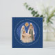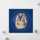 A beautiful painted Nativity Scene, with Mary, Joseph and baby Jesus in a manger is in the centre, and the words to the first verse of the popular Christmas carol Away In A Manger circled completely around the picture in white on a dark blue background and in a square format for a contemporary feel. On the back, easily personalise with your greeting and names.