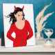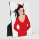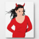 GIRL DRESSED IN DEVIL COSTUME FOR HALLOWEEN, COMPLETE WITH DEVIL HORNS