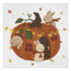 A cute illustration of bunnies and a pumpkin with colorful falling leaves in autumn