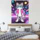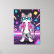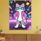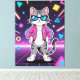 A stylish cartoon cat strikes a confident pose in a neon-lit, retro arcade world. Rocking a hot-pink bomber jacket and cool blue shades, this feline is the embodiment of 80s nostalgia and futuristic flair. With pixel shapes and neon beams glowing in the background, the cat radiates pure confidence and playful swagger.