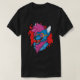 I give wanted to give this a 4 instead of a 5 because these Basic DARK T0shirts run unexpectedly SLIM or Narrow. Which is great if you do not have a potbelly, but I have a paunch. It isn't the shirt's fault that I've got a beer belly. The design and shirt itself is a quality cotton shirt. The color is more of a deep purple, but still a very pretty color. The Basic DARK T-shirts run a bit SLIMMER than the Basic Ts. The neck is a fraction narrower (or seems to be narrower) also. I'm a paunchy middle-aged woman and my neck is 12 inches (31cm) thick and the neckline fell about the same as in the photo of the man, and I had the desire to tug it a bit. So if you're a thick necked man or like loose shirts, be aware these are slimmer shirts. Once I get rid of my lockdown paunch it'll look great. The shirt washed well in cold water with no apparent bleeding. We don't have a dryer, so it hung dry. Did not shrink. Love the colors and the design. The design looks smaller on my shirt than it does on the model on-line. But still, it looks good on the shirt. The printing looks as it does on the model, just the size seems fractionally smaller. Washed garment in cold water, hung dry and design appeared unaffected.
