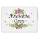 Tell everyone that you are the most awesome Gran with this great t-shirt design. This brand new design features the words "Awesome Gran" in black lettering to stand out from the background of beautiful flowers above and below in a variety of colours. What better way to show your Gran just how awesome she is . This new design is featured on t-shirts, hat, coffee mug, tote bags, key chains, magnets & so much more!