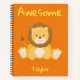 This notebook features an orange background with a lovely lion. At the topic is features "Awesome" written in fun yellow font. At the bottom is your name. Personalise yours today!