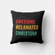 Black History Month Awesome Melanated Christian Throw Pillow with CUSTOMIZABLE TEXT. The design shows bold red, yellow and light green typography and an embossed-effect outline of Africa. The word CHRISTIAN is CUSTOMIZABLE so you can change it or add your name. This would be great African American Caribbean Throw Pillow to give as gifts or sell as merchandise, etc, especially during Black History Month or throughout the year at Black cultural events and to show awesome melanin poppin' pride in your identity.