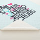A small sherpa blanket with a cute and awesome saying. Typography text says: This superhero wears scrubs. Designed with a light blue stethescope and a big pink heart and a pink heart monitor line. A light blue background with faded pink polka dots.