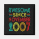 Awesome Since November 2007 Years 18th Bday Funny Magnet