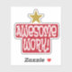 Awesome Work appreciation to recognise team members, employees, or students for their good work on a project. Fun font on red background with gold star at the top.