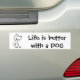 Cute funny cartoon dog bumper sticker says life is better with a dog.