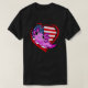 I give wanted to give this a 4 instead of a 5 because these Basic DARK T0shirts run unexpectedly SLIM or Narrow. Which is great if you do not have a potbelly, but I have a paunch. It isn't the shirt's fault that I've got a beer belly. The design and shirt itself is a quality cotton shirt. The color is more of a deep purple, but still a very pretty color. The Basic DARK T-shirts run a bit SLIMMER than the Basic Ts. The neck is a fraction narrower (or seems to be narrower) also. I'm a paunchy middle-aged woman and my neck is 12 inches (31cm) thick and the neckline fell about the same as in the photo of the man, and I had the desire to tug it a bit. So if you're a thick necked man or like loose shirts, be aware these are slimmer shirts. Once I get rid of my lockdown paunch it'll look great. The shirt washed well in cold water with no apparent bleeding. We don't have a dryer, so it hung dry. Did not shrink. Love the colors and the design. The design looks smaller on my shirt than it does on the model on-line. But still, it looks good on the shirt. The printing looks as it does on the model, just the size seems fractionally smaller. Washed garment in cold water, hung dry and design appeared unaffected.