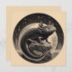 This charming square card features a vintage-inspired illustration of an axolotl perched serenely on a rock beneath a glowing cosmic sky. The axolotl, with its signature feathery gills and gentle smile, gazes into the distance as if pondering the mysteries of the universe. Behind this delightful amphibian, the full moon rises in a night sky filled with twinkling stars, casting a soft light over the scene and lending a dreamy, otherworldly feel. The background feels vast and enchanted, blending nature and the cosmos into a surreal landscape that feels like a glimpse into an antique celestial map. The warm, aged tones of the illustration give it a retro sensibility, like something plucked from a forgotten folio of scientific curiosities or a vintage biology book reimagined with a cosmic twist.