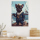 This playful nautical poster stars Seadog, the proud Frenchie in full Navy dress. With his cap tilted stylishly and binoculars locked onto the horizon, he's the most focused (and adorable) sailor on board. A cheeky seagull balances on his shoulder, and a mug marked “#1 Doggo” waits nearby. With the sea rolling behind him, this loyal pup looks ready to defend snacks and freedom. Perfect for coastal homes, dog fans, and military-themed spaces alike.
