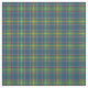 Traditional Scottish plaid pattern in shades of blue and green with bright red and yellow highlights.