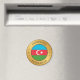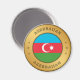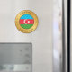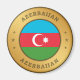 The national flag of Azerbaijan is infused into a faux gold ring shape that has bevelled inner and outer edges. At the top and the bottom of the ring is the country name, and six decorative stars complete the design.