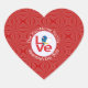 Heart shaped sticker has the Azorean LOVE FLAG. The word LOVE is featured in red letters inside a white, fractal circle of squiggly squares. The circle sits on a red, fractal background, also, of squiggly squares. Great for your guests at your next occasion or party to celebrate the Azores. Can be customised for Freedom Day or any occasion.