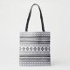Aztec Black on White Mixed Motifs Pattern Tote Bag