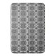 An aztec inspired black white and grey bath mat with a modern geometric pattern