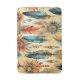Aztec boho native American watercolor tribal design of turquoise blue feathers, abstract red sunflowers and geometric shapes on a desert sand background.