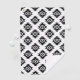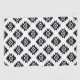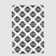 Aztec influenced stylised symbol in a repeat surface pattern design in black and white detail on a white background.