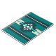 Aztec ethnic bohemian pattern with geometrical shapes in white, beige and turquoise colours on striped background