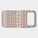 An Aztec style design in a digital and vector pattern with rust/terracotta color and blue detail on a cream background.